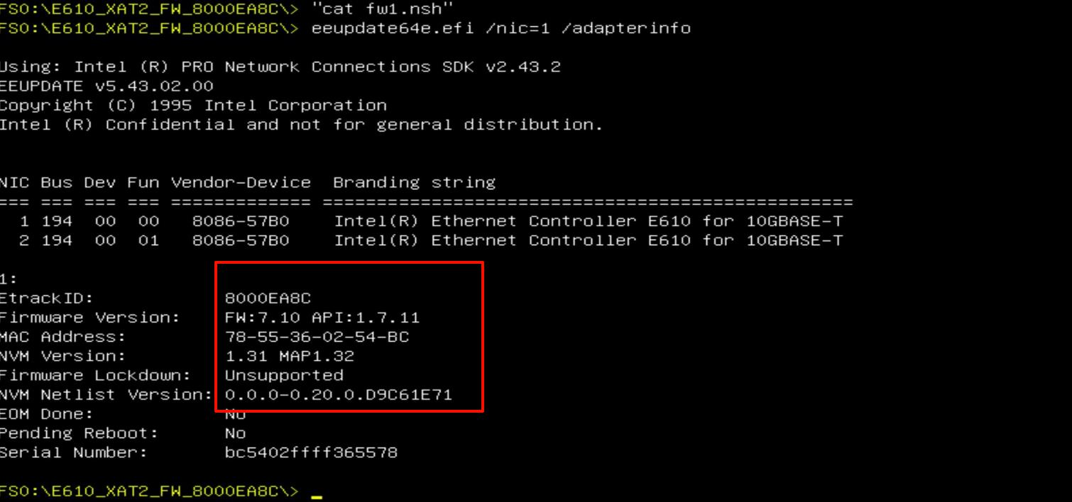 eeupdate64e.efi /nic=1 /adapterinfo - ▫️ 针对网卡 2: