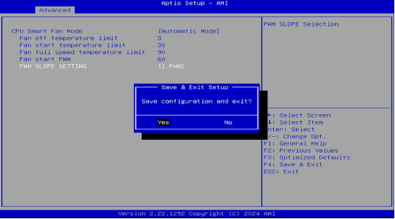 6.调整完成后,按下【F4】,选择【Yes】保存并退出即可生效
