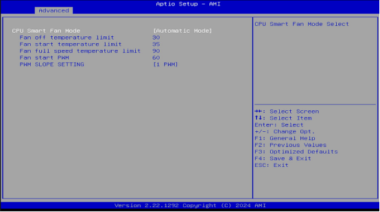 5.当【CPU Smart Fan Mode】设置为【Automatic Mode】时我们可以看到有很多参数,具体参数解释在下方