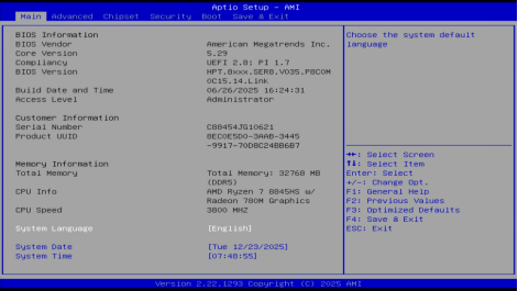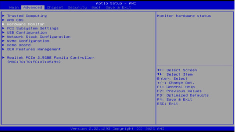 2. 进入BIOS后,使用方向键切换到【Advanced】,进入【Hardware Monitor】选项
